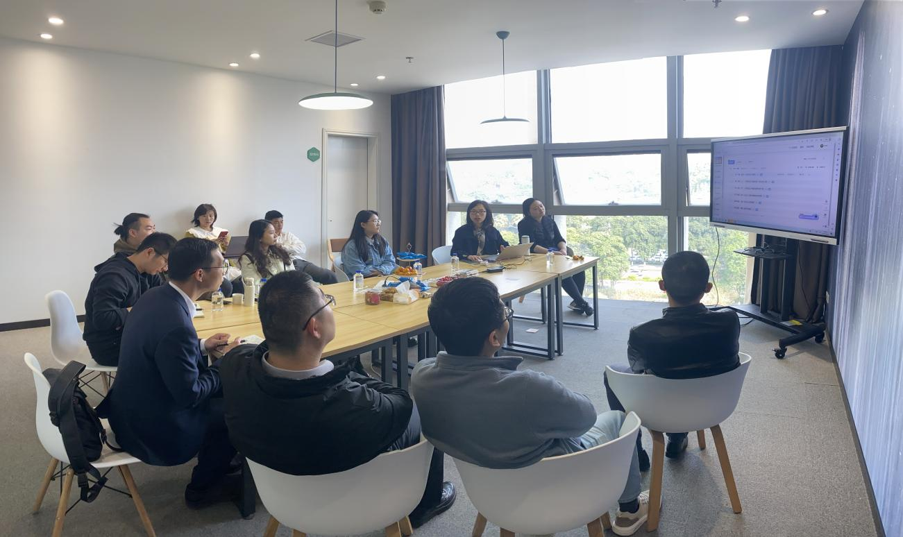 知识产权系系主任焦海洋副教授简要介绍了专业的基本情况,说明了此次调研的主要目的,并感谢了智慧树工作人员的辛勤付出。智慧树的肖雪美总监分别主讲了一流课程建设和运行的流程,虚拟仿真课程建设和微课建设的流程、要求和准备工作,数字化教学模式、思政融入课程的方式等。智慧树的陈川江经理介绍了智慧树在重庆的基地分布情况。与会教师围绕着课程制作的周期,录课要求和社科类虚拟仿真课程的实现方式等进行了广泛和深入的交流。