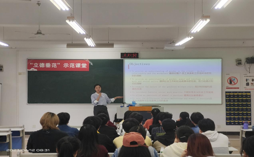 此次开展的示范课有:张译引老师讲授的《特殊群体社会工作》、向往老师讲授的《宪法》、付海鸿老师讲授的《西南少数民族文化与社会》、曾琳老师讲授的《债权法》。