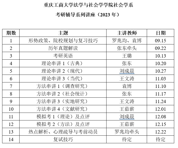 本学期开学以来,为全力指导学生考研,社会学系于2023年9月起,陆续成功举行了系列考研指导专题讲座。
