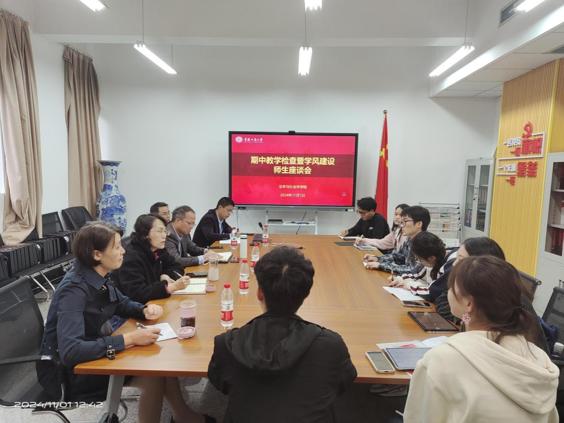 做好本科教育教学审核评估工作,进一步加强我院的教学管理,建立良好的教学秩序,关心了解学生的学习、生活、思想动态,推进学风建设,营造良好的育人环境。111日,我院分别在90407会议室、90429会议室召开社会学类、法学类期中教学检查暨学风建设师生座谈会。学院党委书记李莉莎、教学副院长侯明喜、组织员陈善国、学院督导、系主任、教师代表,来自各班级30位学生代表参加了本次座谈。座谈会分别由副院长侯明喜、组织员陈善国主持。
