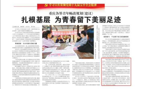 其中,研究生一支部党员、2018级法律硕士李青泊谈到,“规划《建议》提出要更加健全社会主义民主法治,让社会公平正义进一步彰显。到二〇三五年,人民的权力和权利能得到更充分保障,法治国家、法治政府、法治社会建设的成果将惠及每一个人。”今年暑期,他在返乡社会实践中加入了当地的普法志愿服务队,以故事案例的形式向群众讲解民法典的法条要义,切身体会到群众对自身权益的保护意识不断增强。他表示将发挥专业所长,在婚姻、就业、住房、教育、社保等民生领域保障人民合法权益,维护社会公平正义,为社会主义法治贡献自己的青春力量。后李青泊同学的学习体会被《重庆日报》报道。