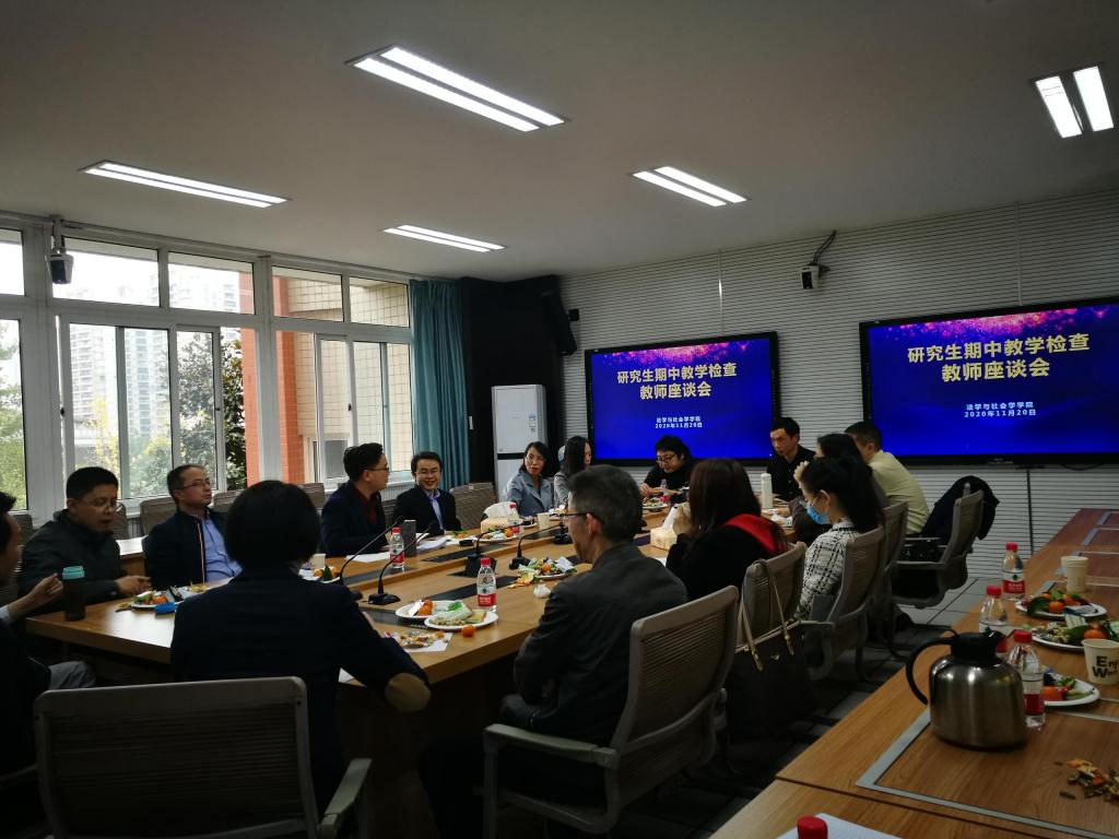会上,刘勇副院长向与会同学介绍了研究生院以及学院参会的领导和老师,并向到场的同学和领导介绍了本次会谈主题,主要听取各专业研究生对教学及任课教师及学校各方面的建议及意见。接着,研究生院领导田双全院长询问社会学和社会工作专业学生进入法学院是否适应,期望同学们能够畅所欲言,将教学、生活、学习和职业生涯等问题与在场的领导和老师反应,研究生院及法社学院可以解决将及时解决,不能解决将问题会反馈给有关职能部门,请相关职能部门解决。然后19、20级学生代表分别就实际生活中所遇到的学习和生活问题向学院提出了意见,田院长、曾院长以及刘院长解答了同学们所面临的疑虑,并表示一些问题在接下来的日子里会进行调整。会议最后,刘院长对此次会议进行了总结,并对学生提出了期许。