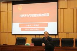 2018年10月19日下午,重庆市纪检监察学会吕天庆会长莅临重庆廉政研究中心,讲授关于违纪行为与职务犯罪的区别的论题,法学院2016-2018级研究生以及宪法、行政法、刑法学的有关教师参与了研讨交流,吕天庆会长的个人魅力深深的折服了在场的每位同学。