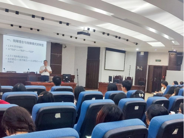 讲座伊始,周林刚教授从“残障理念与残障模式的转型”“社会保障与关爱服务体系”和“完善社会助残服务体系的几点思考”三个方面进行讲解。同时,周林刚教授也向同学们分享了自己的研究经历,结合相关案例提出了自己的想法和思考。他认为关于我国残障人士的社会支持体系还有很大的完善空间,完善社会助残服务体系应从理念正位、需求分析、支持系统分析、供给分析、组织形态创新五个方面入手。报告结束之后,现场师生们就助残保障体系、助残法律保障等问题与周教授进行交流,周教授对大家进行了详细的解答。