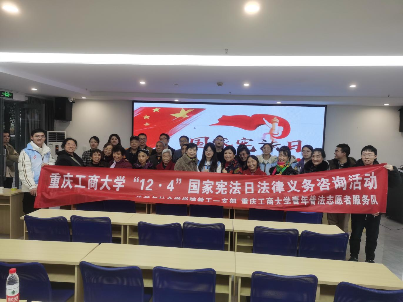 为深入学习贯彻党的二十大精神,贯彻落实习近平法治思想和习近平总书记关于宪法法治教育的重要指示精神,在第十个国家宪法日来临之际,437437必赢国际党委持续深入开展“宪法宣传周”系列活动。12月1日,437437必赢国际教工一支部党员教师公杰、何剑锋、向往以及学团办主任何祖润带领10名青年普法志愿者服务队队员走进大渡口区建胜镇开展专业研学及普法宣传活动。