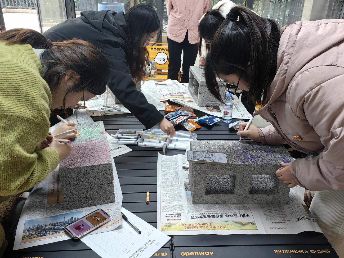 活动现场社区负责人带领师生党员参观社区,围绕“青年次元仓”的创办初衷进行讲解。师生党员认真聆听讲解,不时就社区公共空间改造、青少年服务等问题与社区工作人员交流,为后续服务积累基层调研素材。随后,大家即刻投入“青年次元仓”砖块彩绘共创。师生党员们迅速分工、默契配合,用彩绘的形式注入青春活力、凝聚邻里温情,在美化环境的同时,为校社互动夯实基础。活动最后,党支部书记刘桥阳进行总结,基层社区的发展离不开青年人的身影,大学生党员更应发挥专业优势与先锋模范作用,将课堂所学转化为服务社区的实际行动,以青春之力助力基层治理,探索“党建+专业+社区服务”的可持续共建模式,让青春在基层服务中绽放绚丽之花。