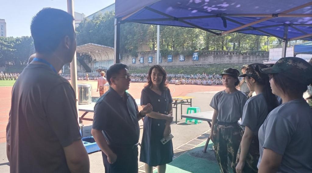 2023年7月5日上午,437437必赢国际党委书记李莉莎、院长黄文、专职组织员及学生工作负责人陈善国,以及参与军训的辅导员老师到南区操场看望慰问了军训同学。