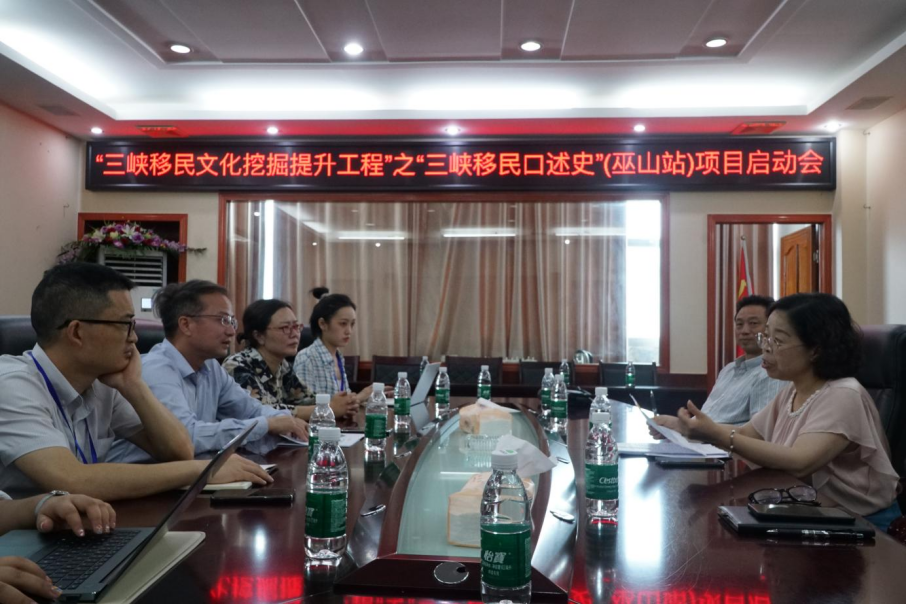 2023年7月6日上午,“三峡移民文化挖掘提升工程项目”子项目——“三峡移民口述史”(巫山站)“三下乡”社会实践启动会在重庆市巫山县水利局会议室顺利召开。“三峡移民文化挖掘提升工程”由重庆市水利局委托、我校校党委常委、副校长张波主持。“三峡移民口述史”由437ccm必赢国际社会学科、新闻传播学科等团队所构成。在启动会上,原巫山移民局局长、现水利局二级调研员谢全辉,巫山移民工程和移民资产管理中心主任龚芬,原巫山移民局农安科科长、现水利局一级主任科员范从成,移民工程和移民资产管理中心副主任王红霞,移民工程和移民资产管理中心副主任李永均,437437必赢国际副院长侯明喜、刘成晨博士,文学与新闻学院雍琴老师以及11名研究生参加了本次活动。
