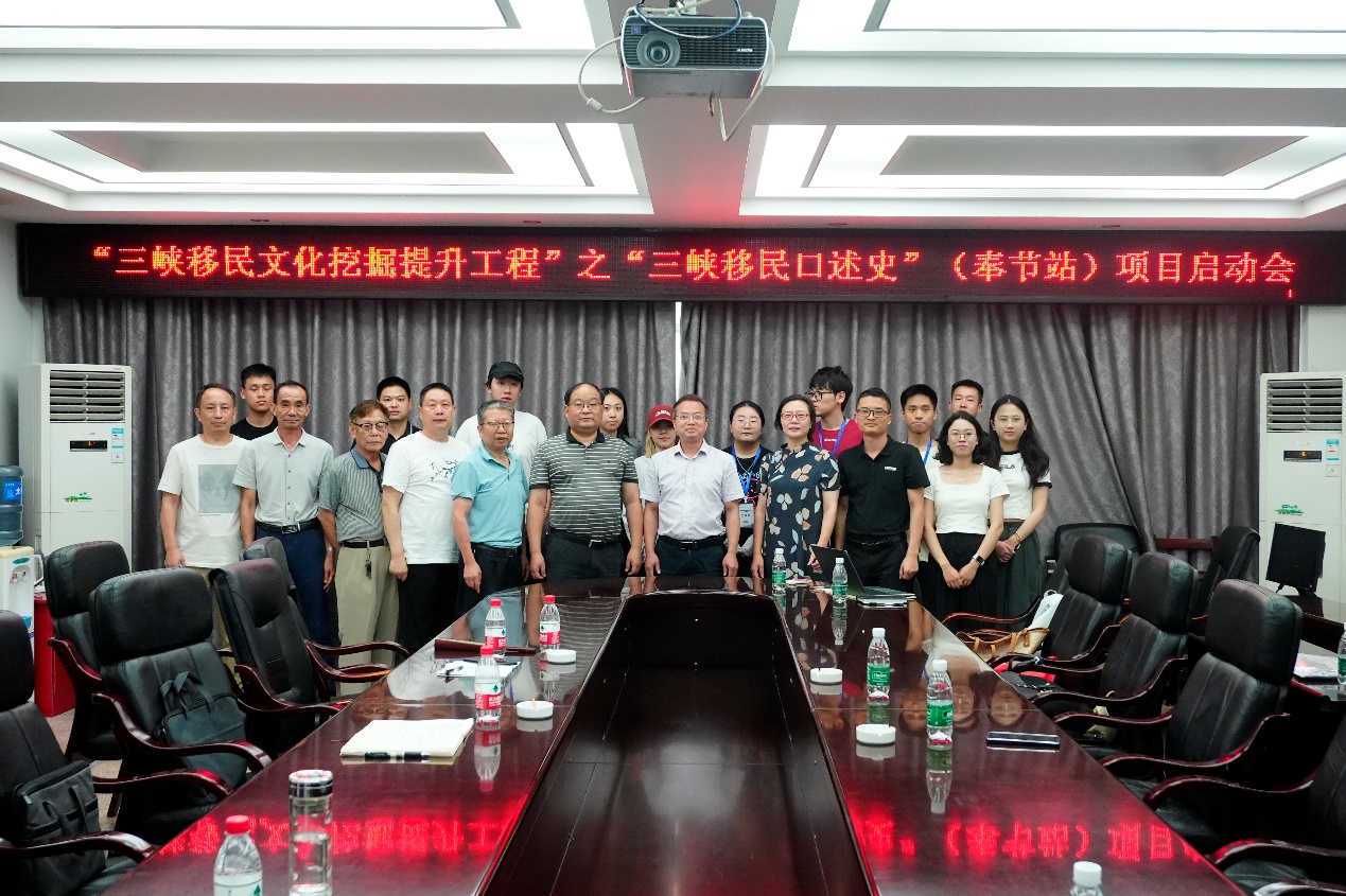 2023年7月11日,“三峡移民文化挖掘提升工程项目”子项目——“三峡移民口述史”(奉节站)项目启动会在重庆市奉节县水利局会议室顺利召开。“三峡移民文化挖掘提升工程”由重庆市水利局委托,我校校党委常委、副校长张波主持。“三峡移民口述史”项目组由437ccm必赢国际社会学科、新闻传播学科等团队成员所构成。在启动会上,原奉节县移民局局长、现水利局副局长郑夔,原副局长程功勋,437437必赢国际副院长侯明喜、刘成晨博士,文学与新闻学院雍琴老师以及十余名研究生参加了本次活动。