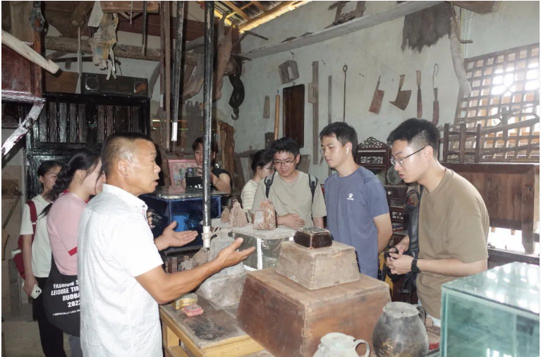 7月13日,调研团成员考察了合川区双槐镇乡情陈列馆、三汇镇康佳村乡情陈列馆和狮滩镇乡情陈列馆。双槐镇以“善”文化作为主题,辅以红色文化展示;康佳村则以“黑金”文化和农耕文化为主题;狮滩镇陈列馆则由民间人士自行搜集上万件老物件打造而成。调研团成员一一记录下展览主题、功能分区、展厅设计、展品和展板陈设中值得借鉴之处,为涞滩镇二佛村乡情陈列馆的设计工作奠定初步思路与想法。