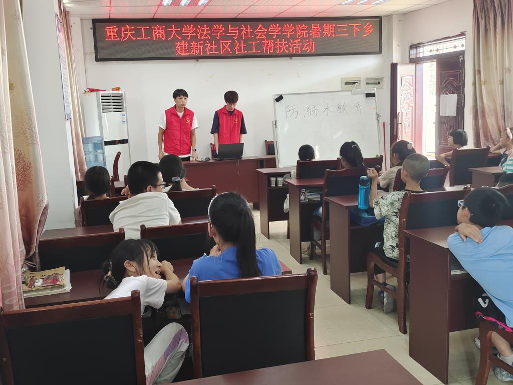 大学生志愿者走进虎峰镇建新社区为留守儿童开设暑期安全教育课堂,提高他们对安全问题的认知和应对能力。志愿者详细介绍了儿童在家、学校等不同环境下的安全隐患问题,针对常见的危险情况,如火灾、拐卖、溺水等进行了预防教学,传授了常用求助电话、自我保护技巧等应对紧急情况的方法措施。志愿者还为孩子们进行了灭火器的使用演示,讲解了火灾的预防和逃生方法。最后,大学生利用医务社工专业知识,围绕儿童日常生活中常见的卫生保健问题进行了讲解,引导儿童重点关注手卫生、饮食安全和传染病的预防,向孩子们传授了正确的洗手方法和常见疾病的急救措施。
