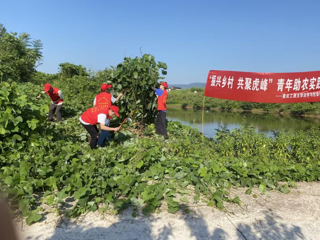 为进一步深入调研铜梁区虎峰镇回龙村特色农业发展的具体情况,助力回龙村产业振兴,大学生志愿者将目光聚焦回龙村的李子园,在回龙村村支书冉顺江的带领下访谈周边村民开展产业调研。回龙村以盛产美味李子而闻名,但李子园的维护面临着一些困难,其中之一就是杂草的生长严重威胁着李子的产量和品质。为了帮助李子园解决这一难题,实践团成员自发组织起来,带上锄头、镰刀等工具,前往李子园进行全面的除草工作,并实地拍摄李子园宣传视频,为李子的销售和包装贡献智慧和力量。
