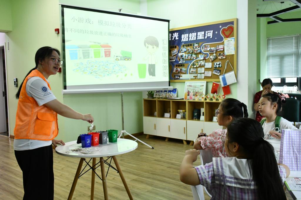 在“环保有你,绿色同行”活动中,大学生志愿者为参加活动的家庭讲解垃圾分类的相关知识,通过知识竞答的方式加深小朋友们对垃圾分类的理解,通过模拟垃圾分类的小游戏,锻炼小朋友们的动手能力和思维能力,提升他们的环保意识,培养良好的环保习惯。