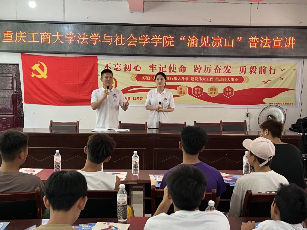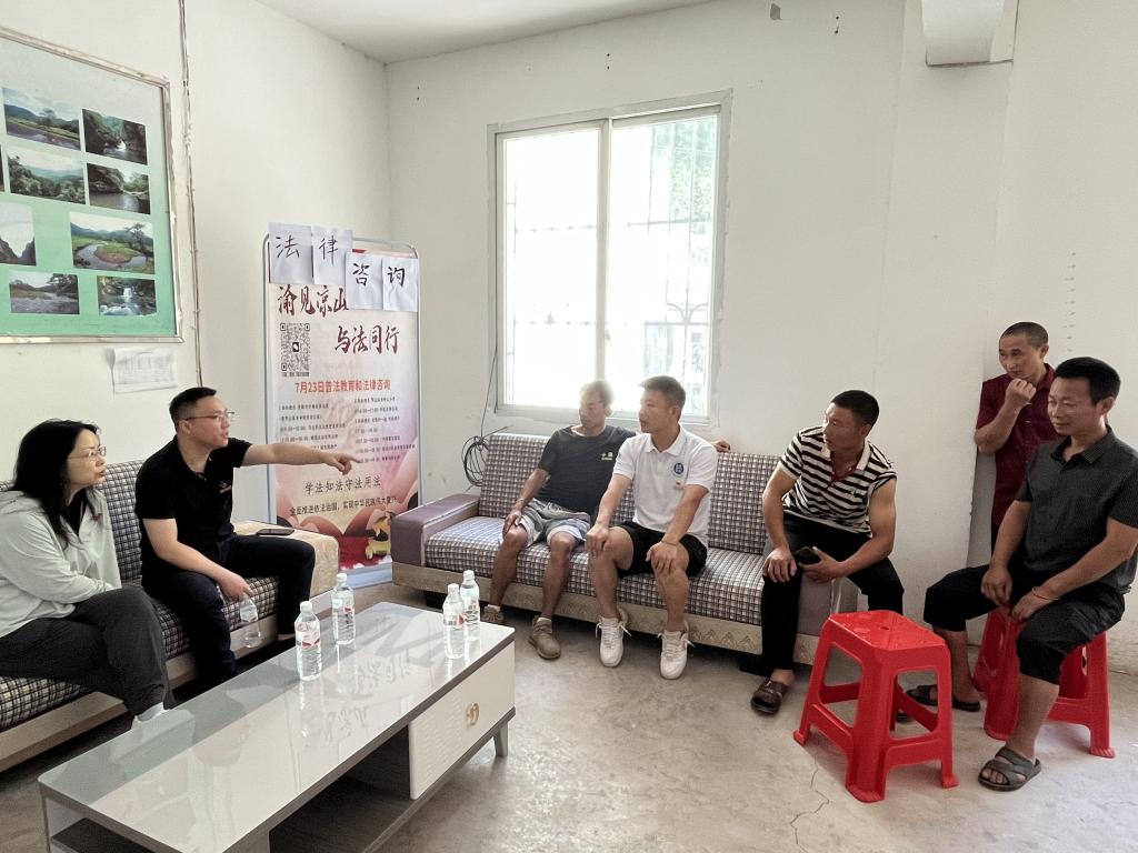 为深入学习贯彻党的二十大精神,落实习近平法治思想和习近平总书记关于青年工作的重要思想,动员学院党员干部投身基层法治实践,弘扬民族团结精神,7月23日,由437437必赢国际10名党员师生组建的“渝见凉山”普法团在四川省凉山彝族自治州雷波县西宁镇光辉村开展系列法治宣讲和法律援助活动。