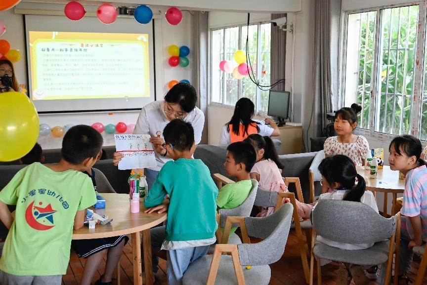7月23日,大学生志愿者走进青龙乡家庭互助会开展留守儿童关爱帮扶活动。志愿者们充分发挥专业特长,通过现场讲解、游戏配合、情景表演、课件辅助、互动提问等形式开展党史学习教育宣讲,让留守儿童“在学中玩儿,在玩儿中学”,向小朋友们充分展示党的百年奋斗伟大历程和重大成就,持续激发他们的爱党爱国热情。在普法宣讲环节,志愿者们以情景剧演绎盗窃案件,展开相关法律知识的讲解,引导小朋友们明辨是非,遵纪守法。