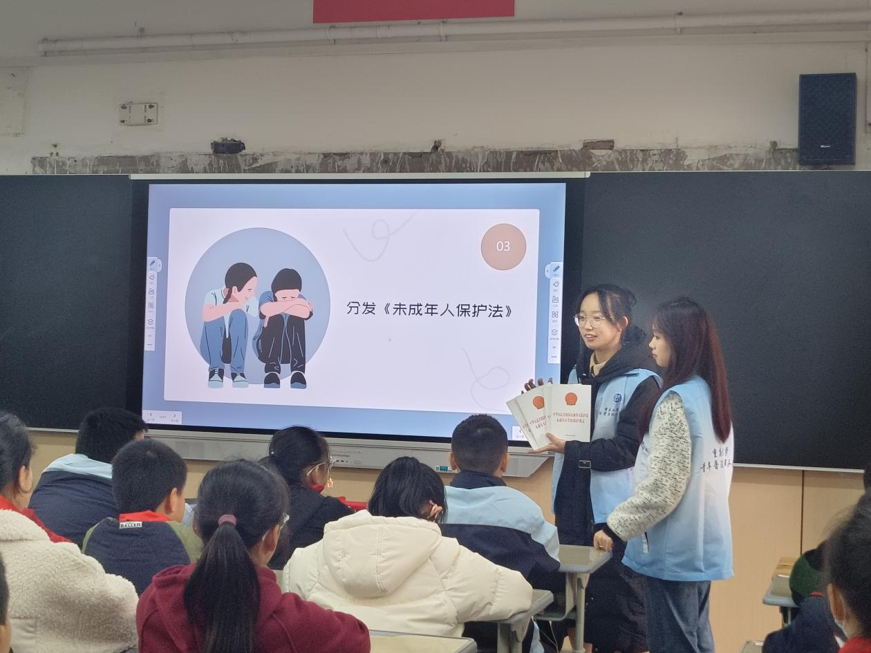 为深入学习贯彻习近平法治思想,大力弘扬宪法精神,加强校园安全教育,提高学生防范校园霸凌意识和能力,437437必赢国际“益起爱”青年志愿者服务队于2023年12月8日在滨江小学举办“维护你我安全,共创和谐校园”反校园暴力普法宣传活动。