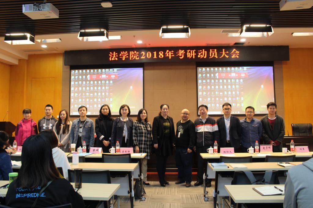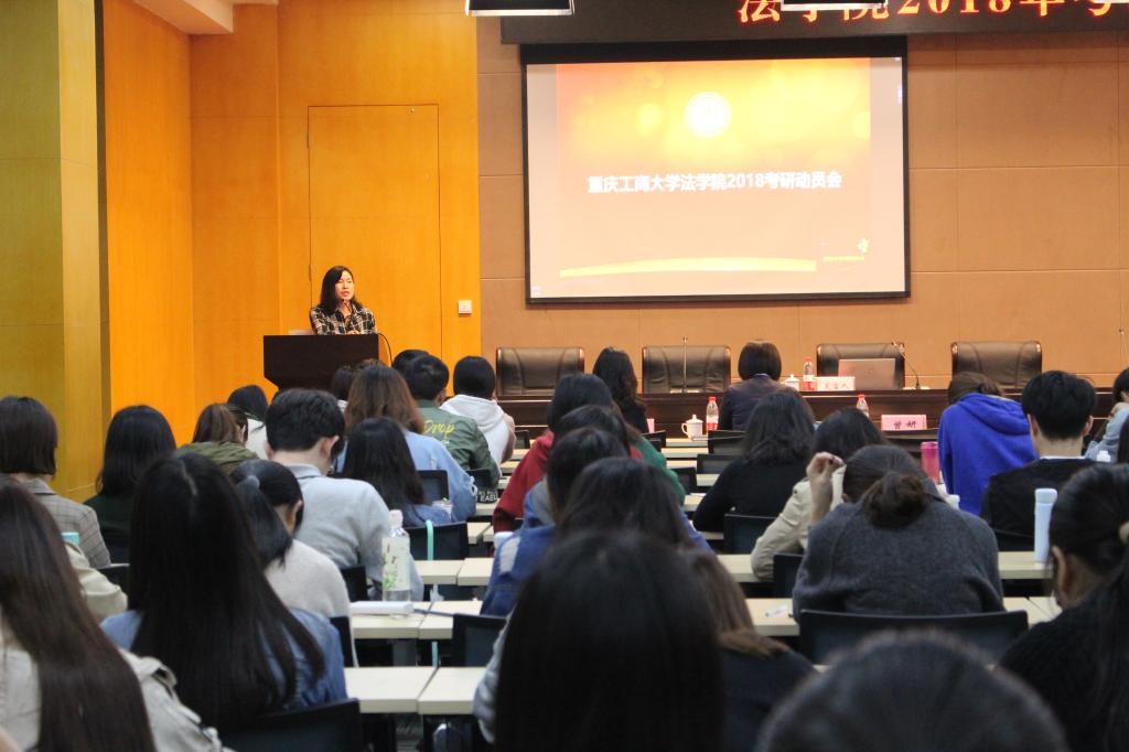 为提升法学院学生对考研的认识,提前做好学业规划,挖掘自身潜能。10月28日14时30分,法学院2018年考研动员大会在南岸校区图书馆二楼多功能会议室召开。本次大会邀请到了西南大学法学院副院长赵学刚教授、西南政法大学研究生招生办公室曾妍主任作主题报告,法学院党总支书记李自维、院长杨和义、副院长刘勇、党总支副书记林璐、法学系主任马迅、知识产权系主任张琨蓓、全体辅导员老师、2015级考研学生、2016级全体学生以及部分2017级学生参加了本次会议。大会由党总支副书记林璐主持。