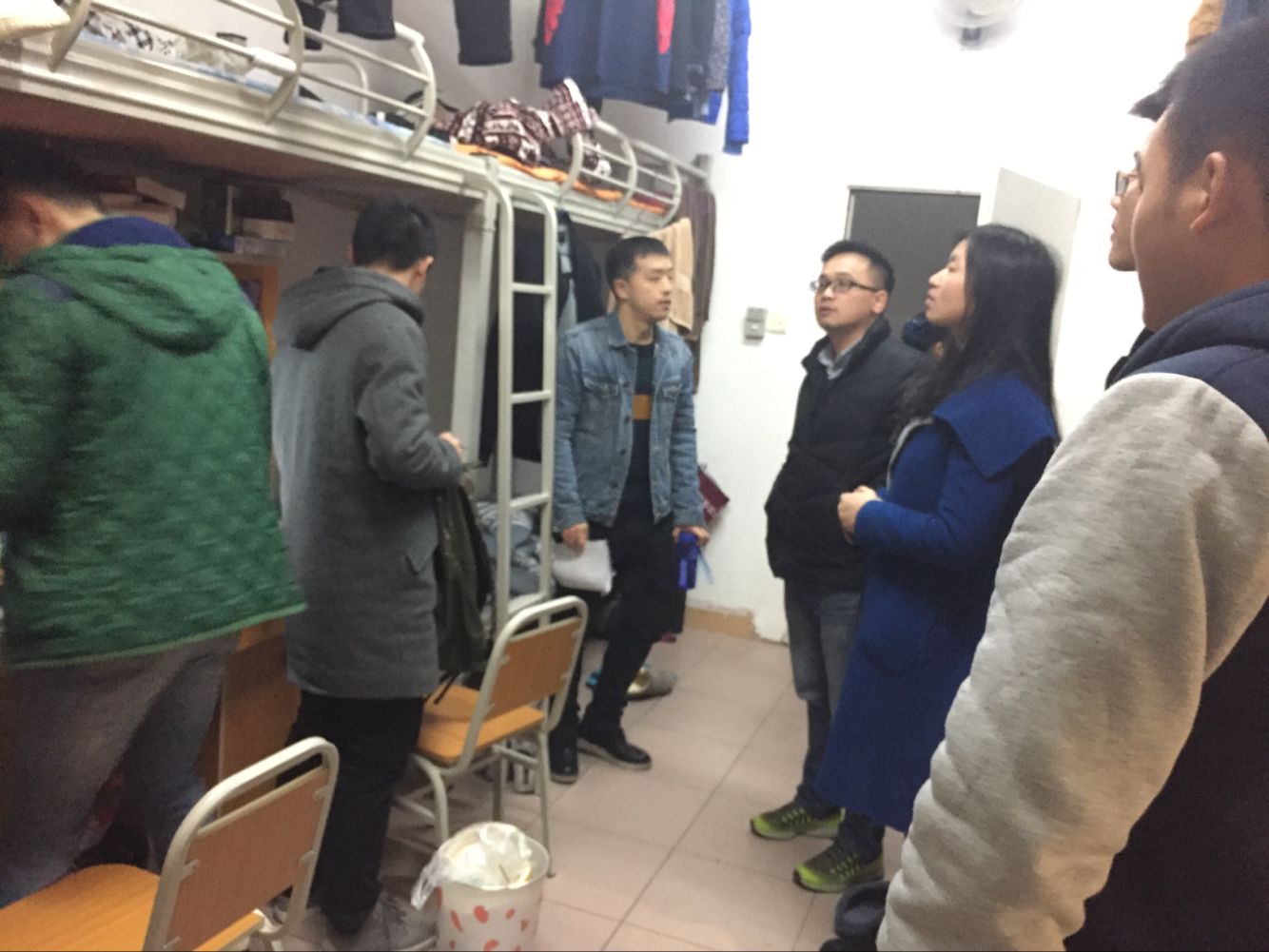 在宿管老师的带领下,领导及老师们详细检查了南16B1、南10整个楼栋内寝室以及外周环境。在检查过程中,重点对宿舍用电安全以及防火防盗等诸多方面进行检查,对现场发现的问题提出整改方案。在近两个小时的精心检查中,发现各个寝室表现良好,室内干净整洁,遵守公寓的规章制度安全用电。但是,仍然发现有极个别寝室存在使用违规电器的情况。简副书记当场记下相关寝室成员的名字,对其提出批评教育,同时让宿管老师没收保管其使用的大功率违规电器,防止其再次使用。此次宿舍安全的检查,提高了我院宿舍的安全生活环境,对打造安全楼栋,提升同学们寝室安全用电以及安全防范意识起到重要作用,使我院宿舍文化迈上了一个新的台阶。