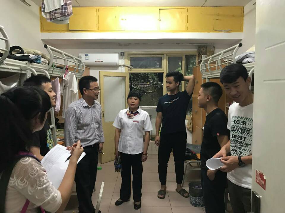 (法学院简书记与辅导员老师们深入学生寝室)