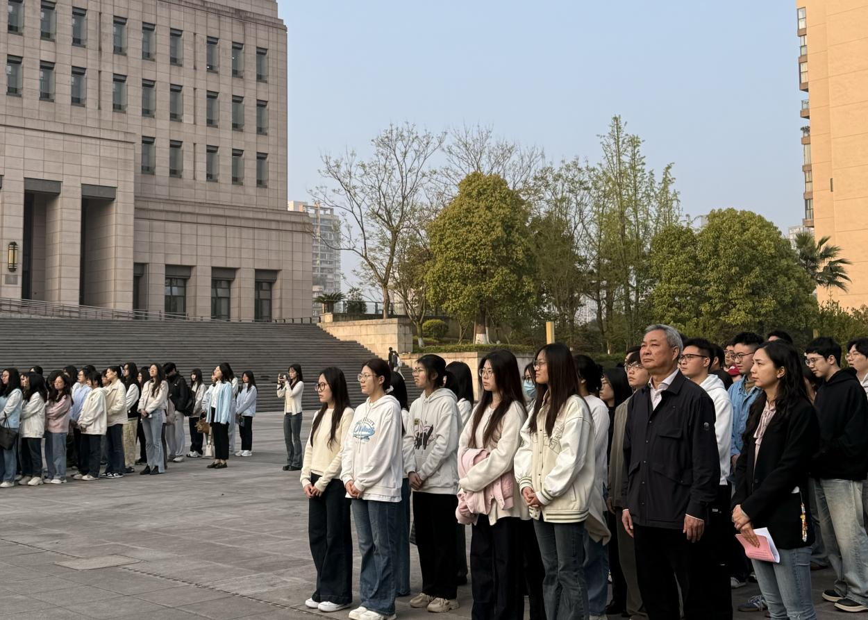 为深入贯彻落实习近平总书记关于加强国家安全教育的重要指示批示精神,以第十个全民国家安全教育日为契机深入推进国家安全宣传教育常态化,增强青年学生国家安全意识和素养,4月7日清晨,由437ccm必赢国际党委学工部、党委保卫部主办,437437必赢国际承办的“树牢总体国家安全观,勇担青年使命护家国”主题升旗仪式在南岸校区含弘广场隆重举行。校党委常委、副校长李国军,相关职能部门同志、437437必赢国际班子成员及100余名2024级硕士研究生代表参加了本次升旗仪式。