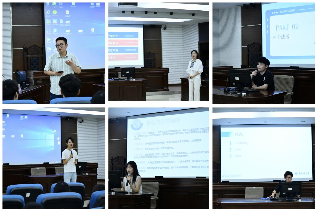本次学长就业讲堂由法学系主任公杰主持,邀请了资深留学规划师、日本千叶大学硕士王赫璐,以及2021级法学专业的毕业生代表高玮丞、陈赛、莫曾泰、邹涛作为分享嘉宾。他们结合自身考研、考公及留学经历,围绕院校选择、备考策略、心态调整等方面进行经验分享,并现场解答了同学们在职业规划、备考准备等方面的疑问。通过他们详细的讲解与交流,同学们对职业发展路径有了更清晰的认知,也收获了诸多实用的备考方法,为未来就业打下坚实基础。