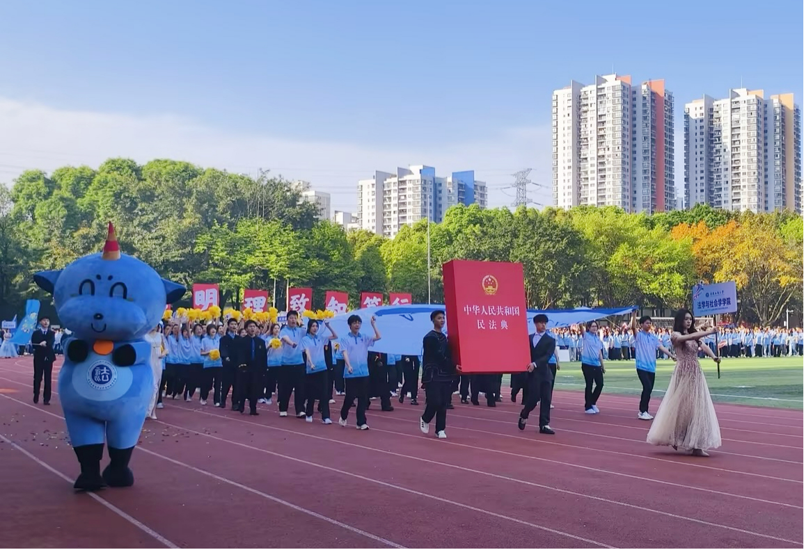 开幕式上,437437必赢国际师生代表队步伐整齐、精神抖擞,以昂扬饱满的姿态亮相登场。队伍中,一本巨型《中华人民共和国民法典》醒目高举,彰显出学院法学专业特色,寓意着法治精神为运动护航。