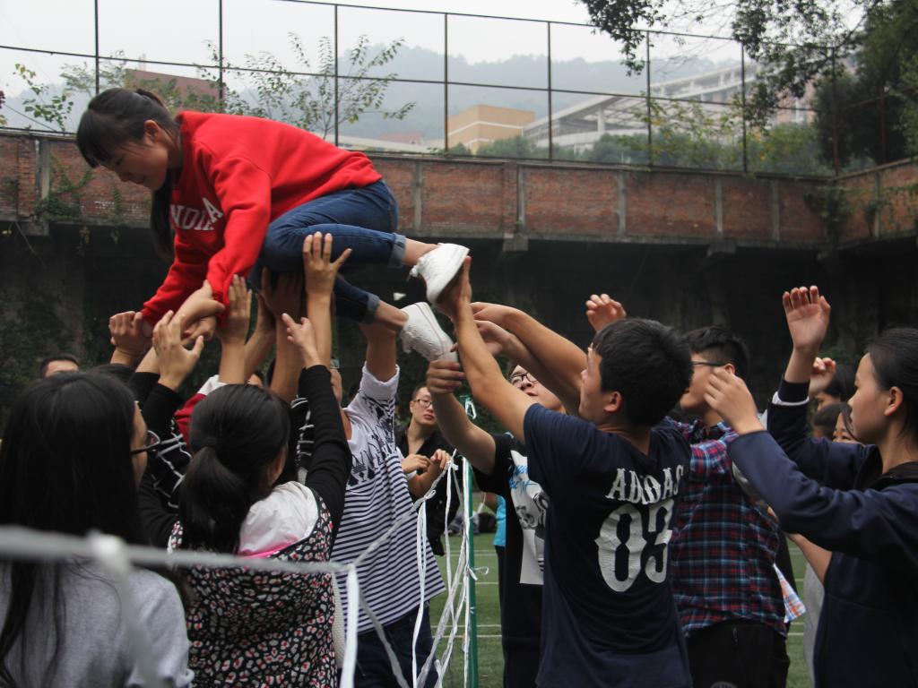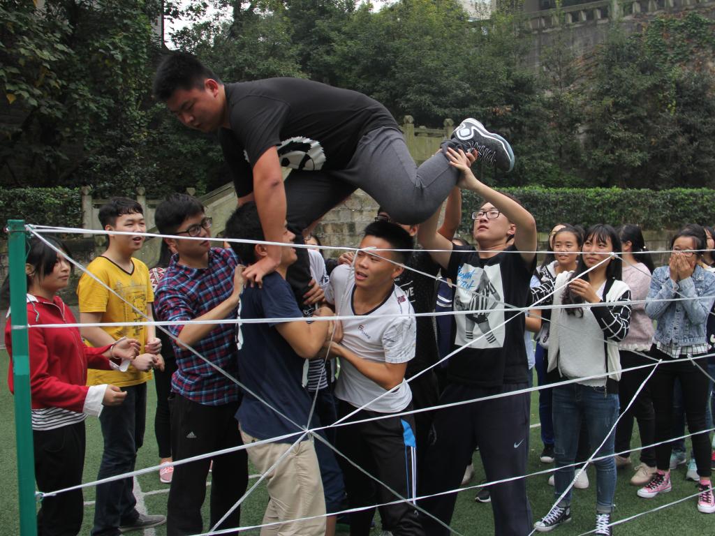 首先干事们被分为六个六人小组,各小组经过五分钟的讨论,决定了各组的组长,组名,组歌,口号以及组旗,并依次上台进行展示。紧接着各小组之间展开了“毅力人椅”的竞赛。本轮竞赛的获胜小组获得了下一个项目“极速前进”的优先出发权,其余小组按照上一轮的战绩依次出发参与到“极速前进”的项目中。经过在6个赛区的角逐,最终第二组获得了“极速前进”项目的冠军,并被授予“优秀团队奖”。随后进行的是集体项目“穿越电网”,在本次项目里,干事们面对极具挑战性的比赛要求和严苛的比赛规则,迸发了前所未有的凝聚力和团结协作的意识。经过大家的集思广益和顽强拼搏,最终完成了比赛。比赛项目结束后,各部门部长与干事们以身体为笔画偏旁,拼出了“法”“十四”等大字,寓意第十四届法学院学生会将通过部长和干事们的通力合作而蒸蒸日上,走向未来。素拓活动结束后,在覃副书记的组织下,大家席地而坐,各抒己见,发表了各自的素拓心得,其中不乏精彩之处,赢得掌声如潮。最终,本次素拓活动以一张第十四届法学院分团委学生会的全家福划上了一个完美的句号。
