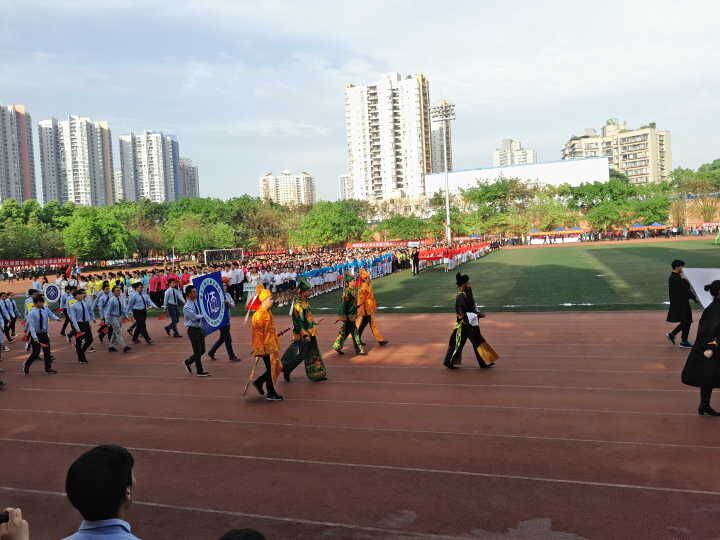 晴空万里艳阳高照,在万众期待中,迎来了第十四届校田径运动会。4月18日上午8点于南区运动场,运动会开幕式正式拉开帷幕。校长孙芳城、党委副书记孟东方、副校长黄大勇、副校长郑旭煦、副校长陈运超、副校长何勇平、副校长苟朝莉出席开幕式;运动员代表李岩松与裁判员代表宋琦分别进行宣誓;副校长黄大勇主持开幕式。
