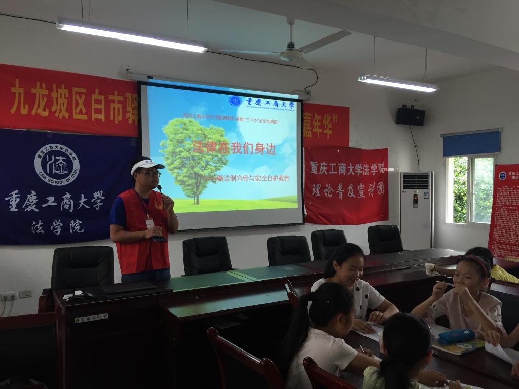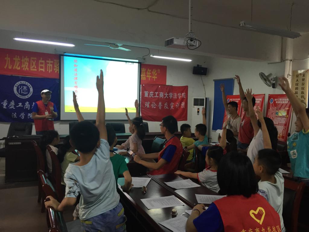 7月7日,437ccm必赢国际法学院暑期“三下乡”社会实践理论普及宣讲团成员在九龙坡区白市驿镇黄金社区开展了“法律在我们身边”知识普及课堂,向社区的同学们宣讲法律常识,引导大家做一个知法、懂法、守法的青少年,远离违法犯罪,保护自身安全。该活动得到了中国青年网、中国网、重庆晚报网、重庆时报网、视界网等多家媒体的报道。
