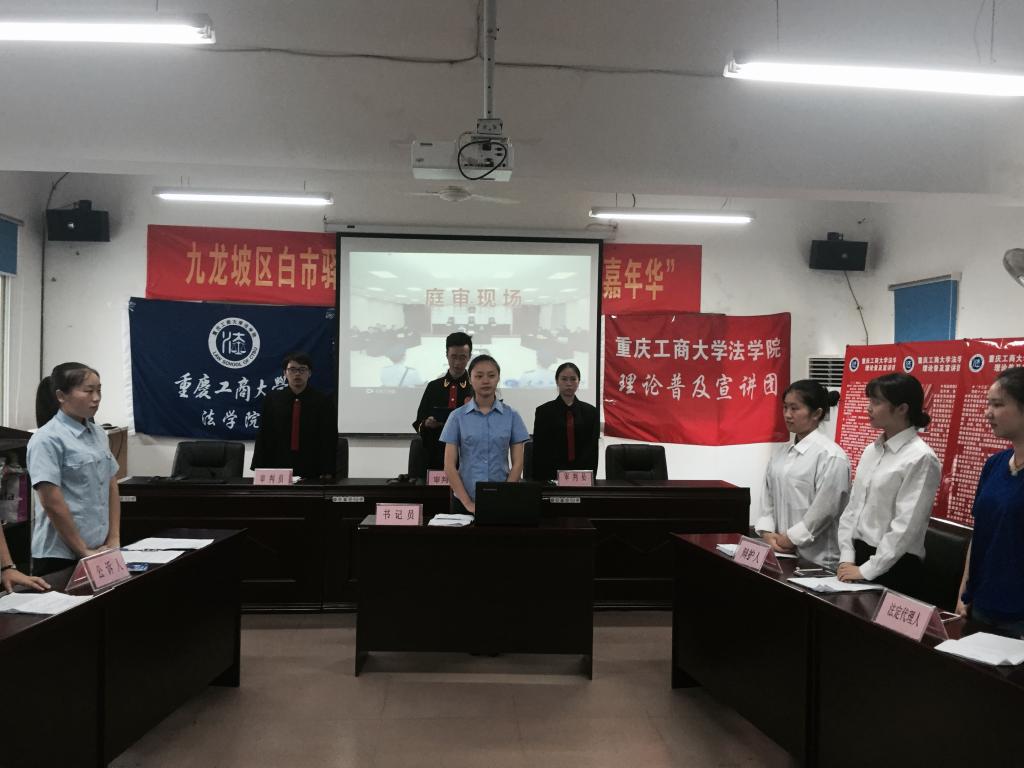 7月8日,437ccm必赢国际法学院“三下乡”理论普及宣讲团在白市驿镇黄金社区给当地居民带来了一场别开生面的“庭审”。该活动受到了重庆电视台、中国青年网、光明网、中国新闻网、中国网、凤凰网等多家媒体的报道。