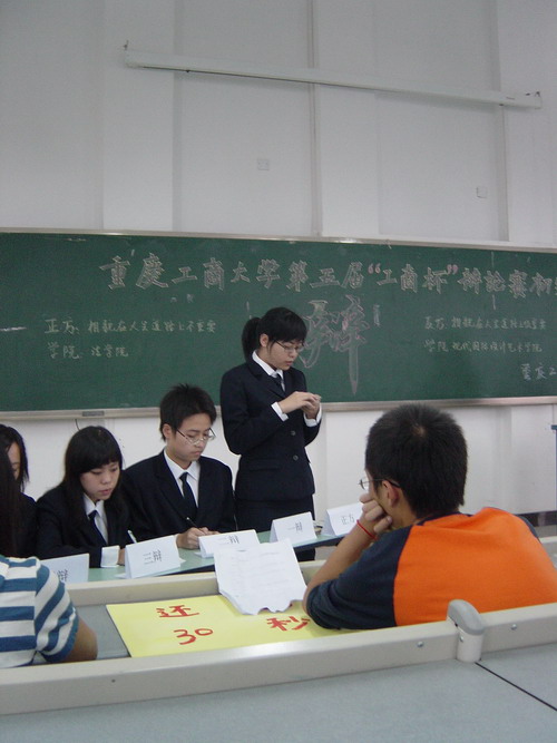 10 月13日下午3:00,在兰花湖20204教室,第五届工商杯辩论赛轰轰烈烈地拉开了帷幕。法学院代表队首战告捷。