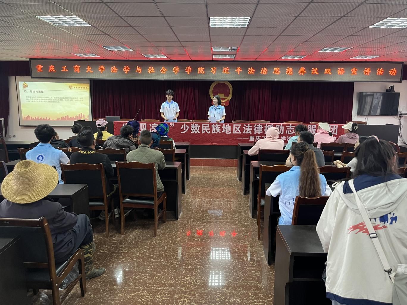 为进一步推动少数民族群众学习领会习近平法治思想,完整准确把握习近平总书记关于加强和改进民族工作的重要思想,推动少数民族地区法治建设,2024年7月11日,437437必赢国际党员师生组建“渝见凉山”法律援助团,走进四川省凉山彝族自治州西昌市大兴乡政府开展以铸牢中华民族共同体意识为主线的习近平法治思想彝汉双语宣讲。