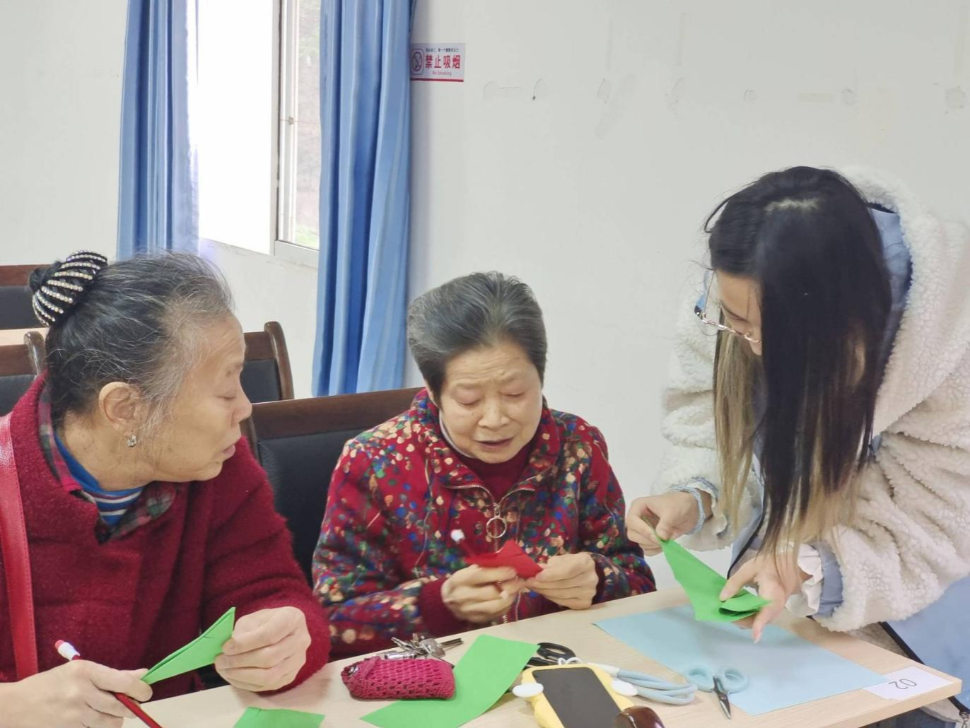 剪纸充盈暮年时光,文化传承跃然纸上。本次活动不仅为老人们提供了一个学习和展示剪纸艺术的平台,传承了剪纸艺术,弘扬了中华优秀传统文化,同时也增进了代际之间的文化交流与情感沟通,为营造温馨和谐的社会氛围贡献出青年力量。