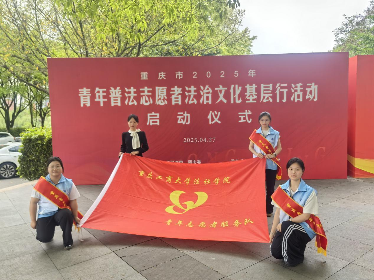 4月27日上午,由重庆市法学会、重庆市司法局、共青团重庆市委联合主办的“重庆市2025年青年普法志愿者法治文化基层行”活动启动仪式在西南政法大学举行。437437必赢国际学团办主任何祖润带领3名青年普法志愿者代表应邀参加了本次启动仪式。