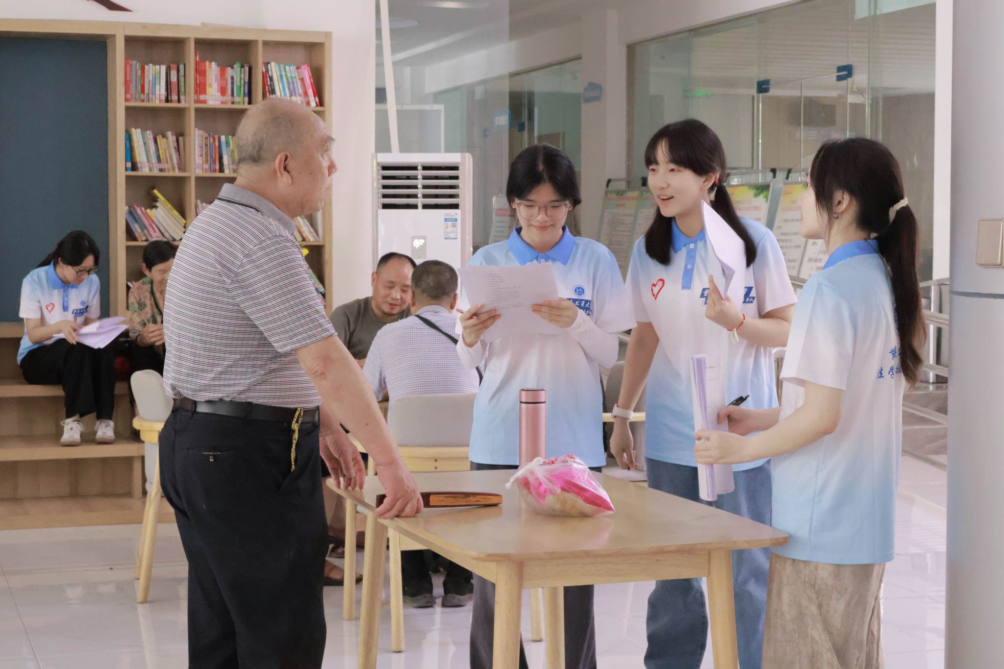 调研团队来到大桥社区党群服务中心,以正在参与社区活动的老年人为主要对象展开调查。“爷爷,您觉得大桥佳城天下社区党群服务中心的活动丰富吗?”“奶奶,平时遇到邻里纠纷会找社区调解吗?” 同学们手持问卷,用通俗易懂的语言向老年人询问社区服务体验、生活需求及治理建议。针对部分视力不佳的老人,团队成员逐字逐句解读问题,协助填写问卷,现场氛围亲切热烈。据统计,上午累计完成近 50 份问卷,内容涵盖养老服务、矛盾调解、公共设施等老年群体关注的热点问题。