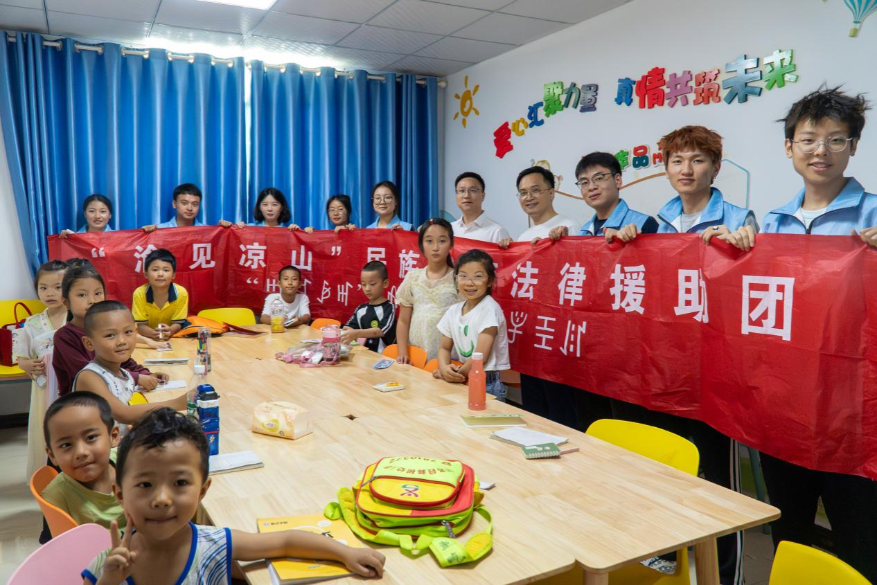 2025年7月10日,437437必赢国际“渝见凉山”民族地区法律援助团的2名法学专家、8名大学生志愿者在四川省凉山彝族自治州甘洛县妇女儿童活动中心开展了一场别开生面的普法活动,通过反诈情景剧演练、模拟法庭及普通话推广教学,为当地学生送去实用知识与温暖关怀。