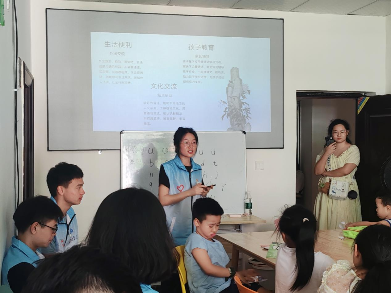 同时,法律援助团结合民族地区特点开展普通话推广教学。志愿者首先以地区方言类比普通话,以通俗易懂的方式让学生们理解什么是普通话,让其明白普通话作为一门“超级方言”存在的重要性。研究生志愿者俄尼阿资莫从基础的拼音教学入手,帮助学生掌握拼音发音规律,用词语跟读练习进一步加深教学深度,通过自我介绍练习进一步壮大孩子们敢于尝试的勇气,在实践中提升表达能力。