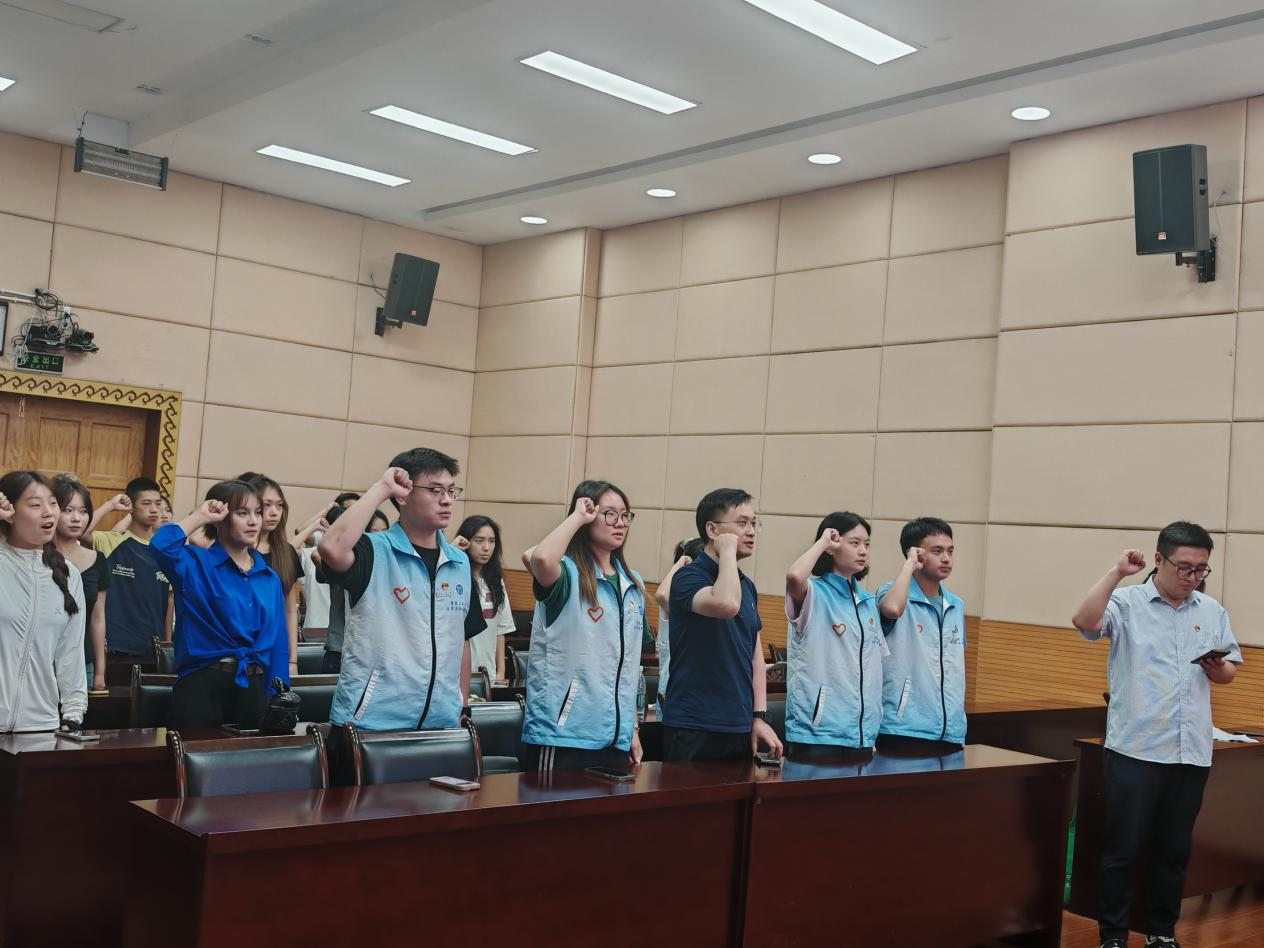 讲堂尾声,研究生志愿者、彝族学子俄尼阿资莫向全体参与活动的甘洛青年宣讲了规范使用国家通用语言文字的重要性,援助团师生带领甘洛青年用普通话进行宪法宣誓,将铸牢中华民族共同体意识融入民族青年法治素养培养全过程。