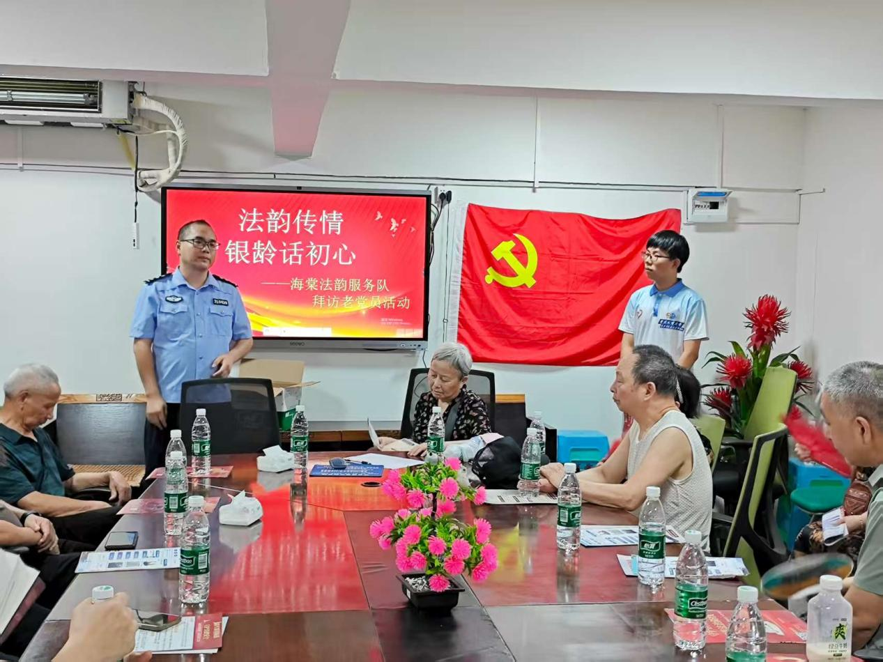 7月16日下午,荣城御景小区活动室内,三十余位老党员齐聚一堂。普法队员们拉起党旗,邀请老党员们共唱红歌《我的祖国》《东方红》,现场气氛十分火热。歌曲唤醒了老党员们的记忆,他们同普法队员讲起了自己的党员故事。随后,普法队员以典型案例切入反诈知识宣讲,通过知识问答宣传反诈知识。社区民警也来到了现场,为大家深度解析诈骗骗局,提醒各位注意防范。