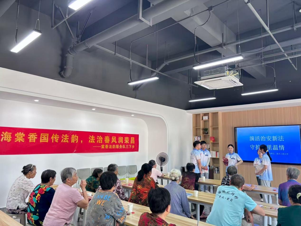 7月15日至17日,437437必赢国际“棠香法韵”服务队赴重庆市荣昌区开展基层普法专项行动。在437437必赢国际法学系主任公杰老师的带领下,队员们深入企业车间、社区中心、居民小区、党群服务中心等场景,面对不同社会群体针对性的进行法律知识宣传,以多维创新模式推动法治精神落地生根。