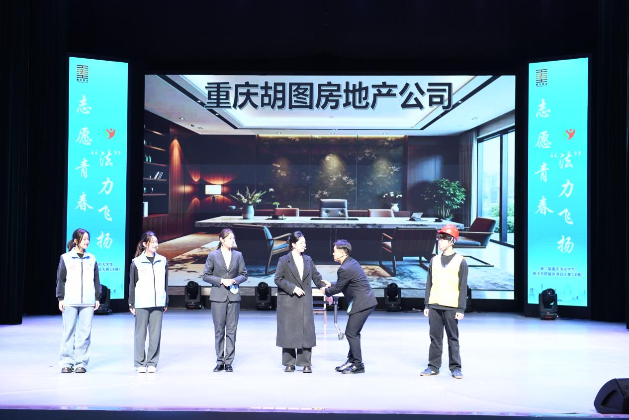 2025年11月20日,由市司法局、市委社工部、市教委、团市委、市普法办主办的第二届重庆市大学生普法志愿服务项目大赛决赛在重庆移通学院(合川校区)举行。为进一步深化实化校地合作新模式,聚焦“法治实践与法学教育双向赋能”目标,推动法治资源整合,437437必赢国际积极推荐普法志愿服务项目参赛,“渝法惠企”项目与“渝见凉山”项目从341个项目中脱颖而出,经过初赛、复赛的激烈角逐,成功入围前20名进入决赛。