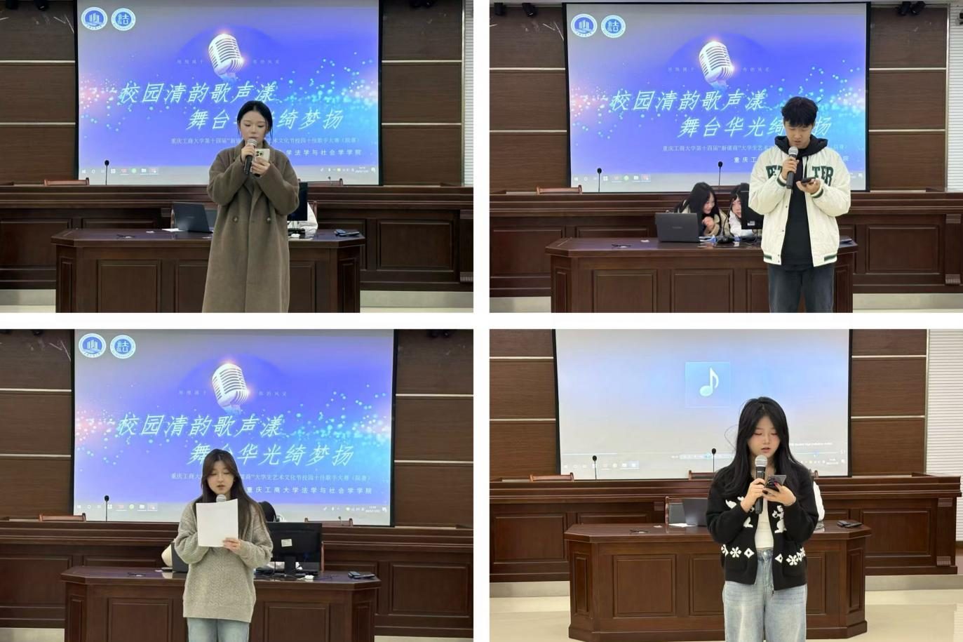 为深入学习贯彻美育教育理念,进一步营造积极向上的校园文化氛围,437437必赢国际于2025年11月22日下午在慧智楼90426模拟法庭成功举办“校园清韵歌声漾,舞台华光绮梦扬”十佳歌手大赛初赛。437437必赢国际上届十佳歌手大赛冠军罗拉初、校艺术团部门负责人李静、25级法律硕士班张溦桐担任本次大赛的评委。