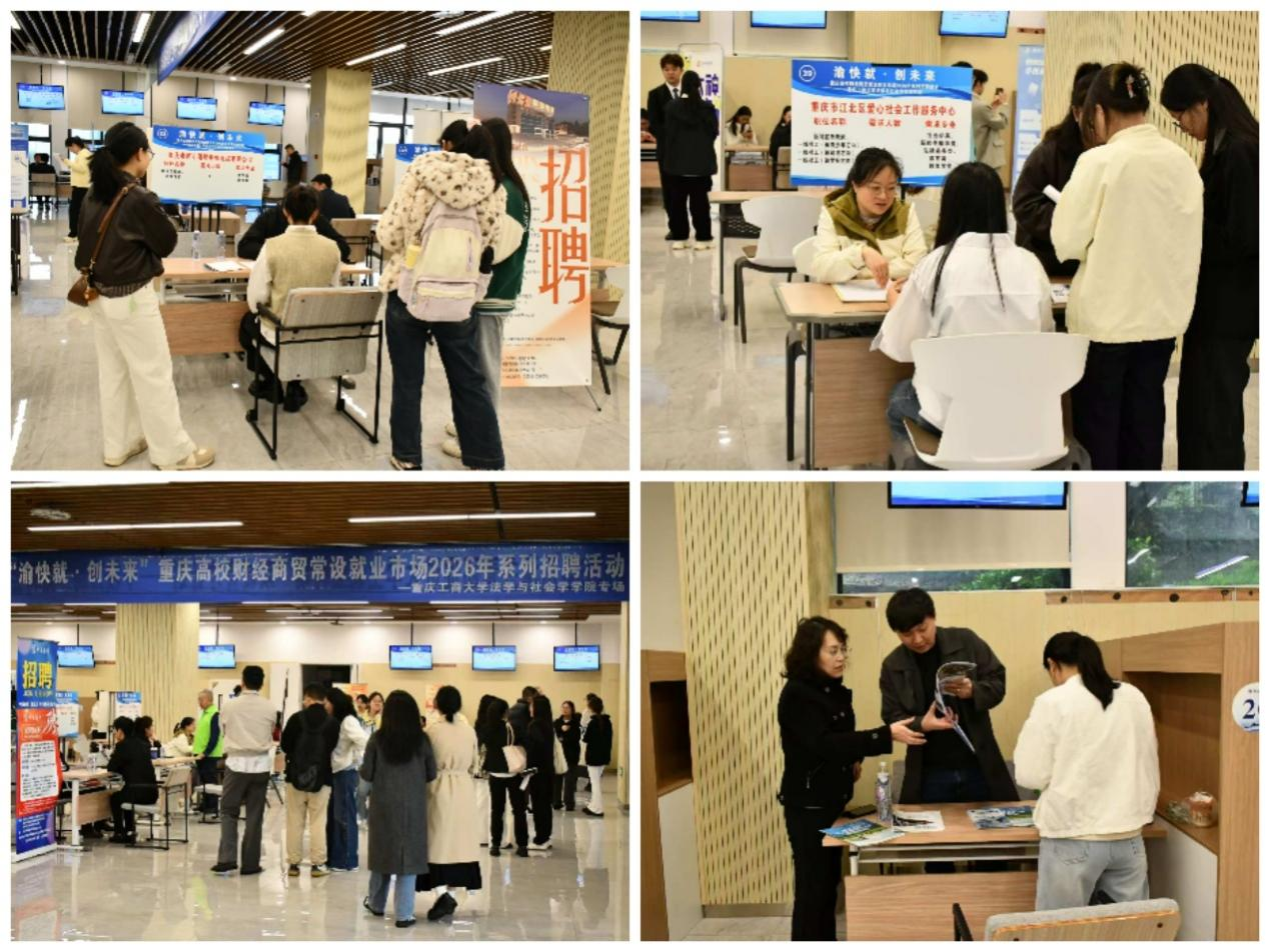 为全力推动毕业生就业工作高效落地,精准对接用人单位人才需求,搭建毕业生与优质企业的双向沟通桥梁,2026年3月31日上午,由437ccm必赢国际招生就业处、校团委主办,437437必赢国际承办的“渝快就·创未来”重庆高校财经商贸常设就业市场系列招聘活动暨“双城青才计划——千校万岗”专场招聘会在学生事务中心招聘大厅举办。