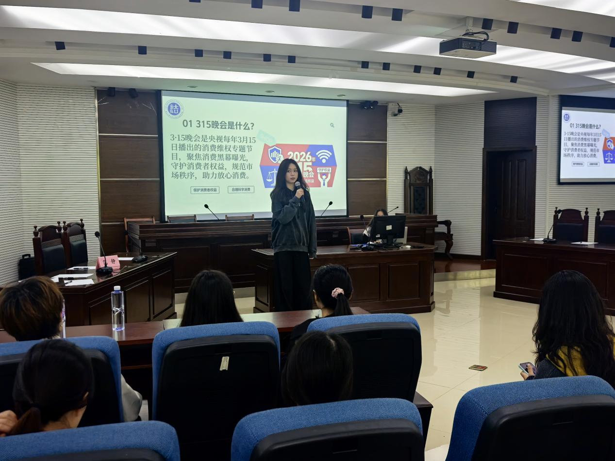 为强化大学生消费权益保护意识,提升识骗防骗能力与依法维权素养,2026年3月16日,437437必赢国际在慧智楼90426模拟法庭举办“3·15护航青春”守护学生消费权益座谈会。学院学生会全体成员、各年级学生代表参会。