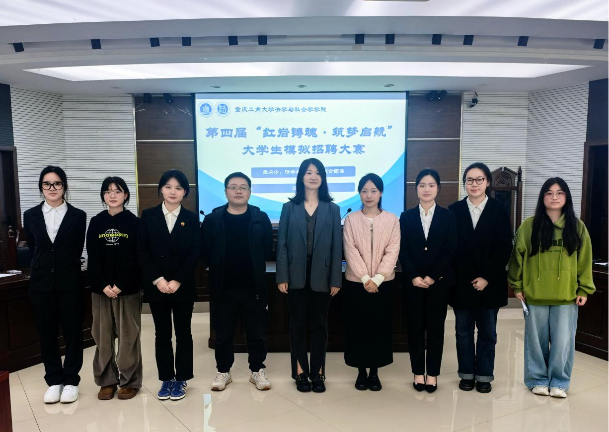 为精准对接行业人才需求,提升学生求职实战能力与职业素养,2026年4月2日,437437必赢国际第四届大学生模拟招聘大赛院级决赛在慧智楼90426模拟法庭举办。本次大赛由智联招聘重庆分公司品牌总监范静,437437必赢国际分团委书记何祖润、2023级辅导员罗观担任评委。