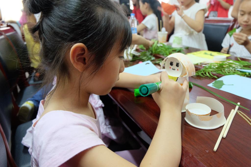 (小朋友专心地制作手工作品)