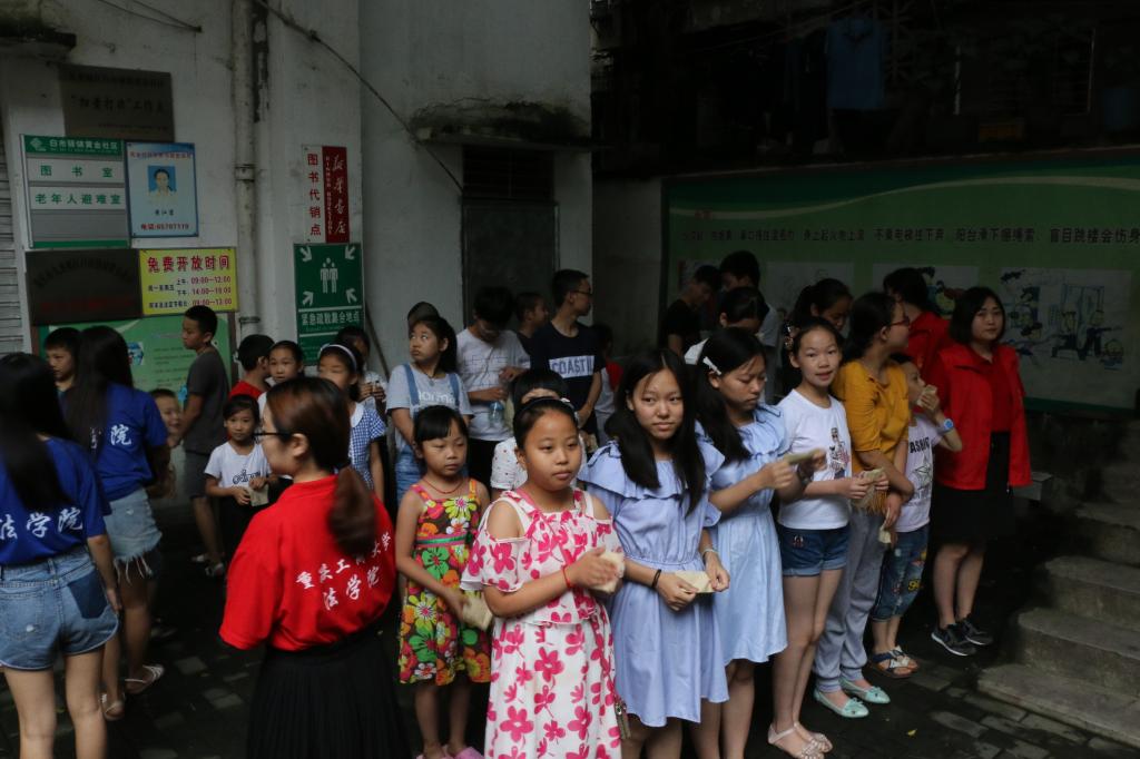 (志愿者带领小朋友们学习《火灾自救歌》)