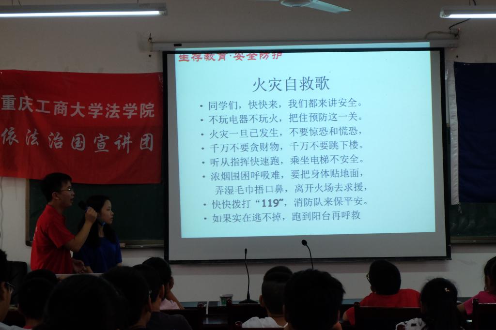 志愿者老师用通俗易懂的语言,以讲案例、讲故事的教育方式为学生讲解了火灾的基本知识,如何预防火灾,遇到紧急情况时应该如何处理等知识,并采取互动式方法,为师生们讲授了“怎样防止火灾的发生”“如何报警”“报警的方式方法”“如何在火场进行逃生自救”“消防法律知识”等与师生们日常学习生活密切相关的各类消防知识;教育学生如何在公众聚集场所识别安全出口和辨别安全疏散的方向以及任何情况下都不要玩火等各种消防安全常识。