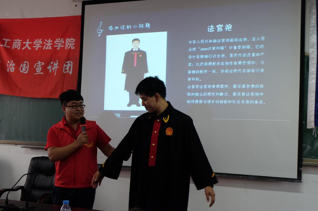 在普法工作中,讲解法官的法袍这一环节十分受社区青少年欢迎。宣讲团成员采用互动教学的形式,即宣讲团成员讲解--学生发言的教学模式,这对调动课堂积极性效果十分明显。大部分青少年都对其认知范围的法袍进行了发言,在青少年讨论之后宣讲团成员进行补充,有利于青少年加深对法袍的印象。此环节结束后不少青少年都表示法官十分威严,希望以后能成为法官惩治罪犯。