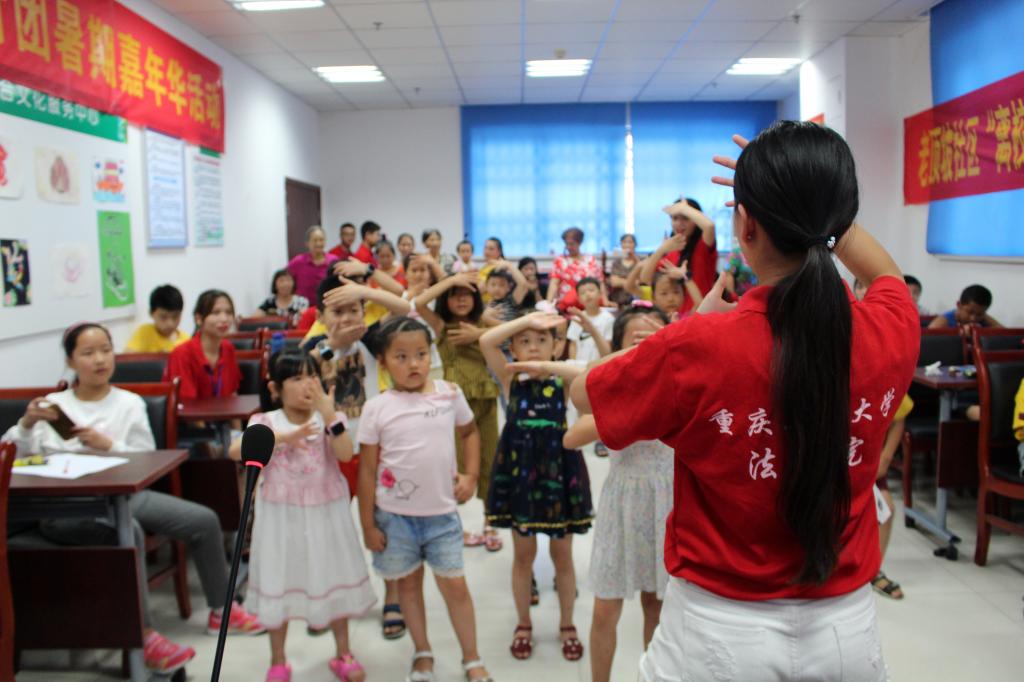 7月26日上午,437ccm必赢国际法学院暑期“三下乡”社会实践活动市级重点团队——“依法治国宣讲团”在石桥铺街道老顶坡社区开展了暑期嘉年华课堂——“跟我学跳舞”。30余名来自老顶坡社区的中小学生来到课堂,跟着宣讲团成员学习舞蹈,一起享受充实的暑期生活。